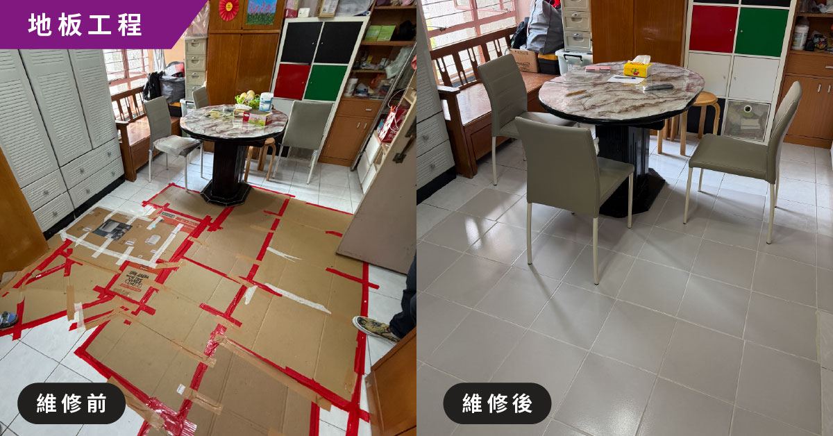 維修工程已於 3 月 21 日圓滿完成! 專業師傅將客廳大範圍凸起的地板重新修補鋪平,確保地面回復平整穩固。現在,梁婆婆終於可以安心地在客廳自在走動,不用再時刻盯著腳下防備絆倒。這項工程不僅修復了地板,更撫平了長者日常生活中的擔憂與壓力。