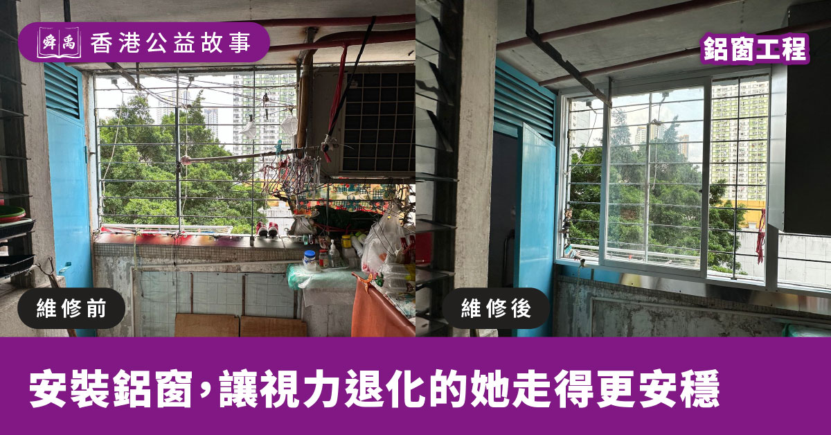 我們接獲轉介後,深知濕滑地面對長者的危險性。考量到黃婆婆身體、經濟狀況,難以自行負擔安裝窗戶的費用。為了保障婆婆的居家安全,我們決定透過「愛維修」計劃提供資助,協助她在露台位置加裝鋁窗。我們希望透過最實際的防護,為婆婆徹底解決風雨撇入屋內的煩惱。